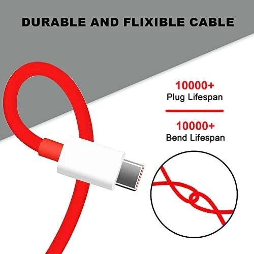 65W OnePlus Dash Warp Charge Cable, USB A to Type C Data Sync Fast Charging Cable Compatible with One Plus 3 /3T /5 /5T /6 /6T /7 /7T /7 pro, Nord 2/CE & for All Type C Devices - 1 Meter, Red