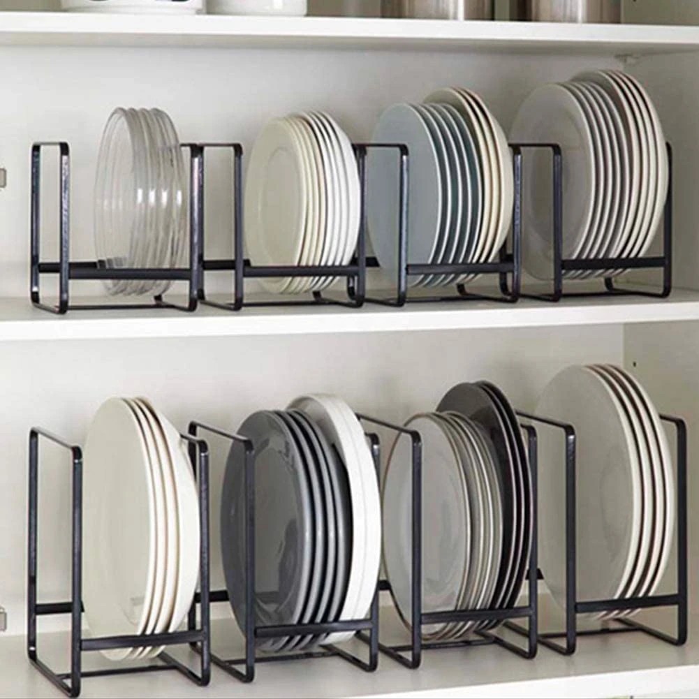 Square plate holder can be free standing, just set it on the countertop for storage; put it on the dinner table for display; place it on the desk for drying; use it in the cupboard, cabinet and pantry for organizing.