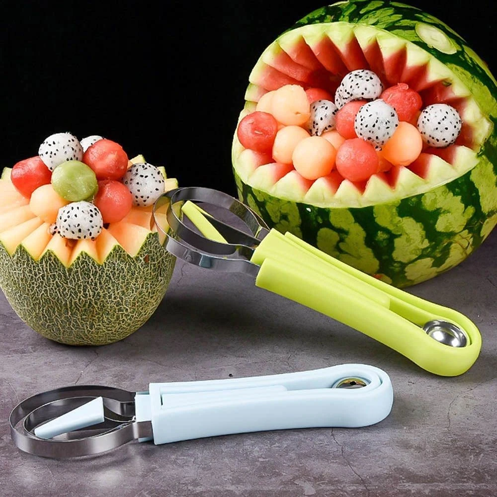 4 in 1 Stainless Steel Melon Baller Seed Remover, Sorbet Dessert Ball Spoon, Fruit Digging Spoon, Double Sided Fruit Scooper, Watermelon Baller Scoop(Green)