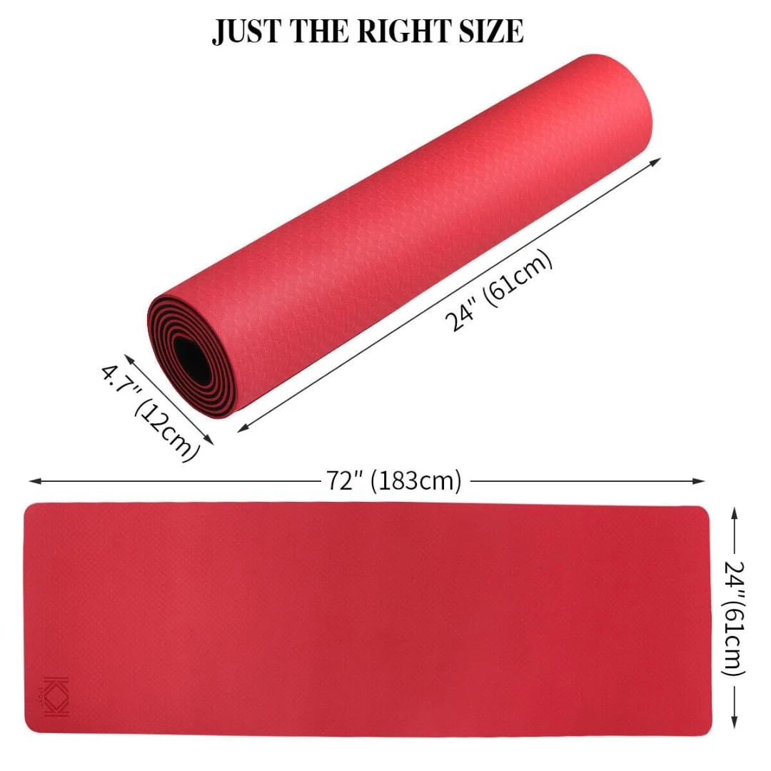 4mm Anti-Skid Lightweight Sweat/Dirt Proof EVA Yoga Mat with Carrying Strap for Gym & Outdoor Workout for Men/Women (Red)
