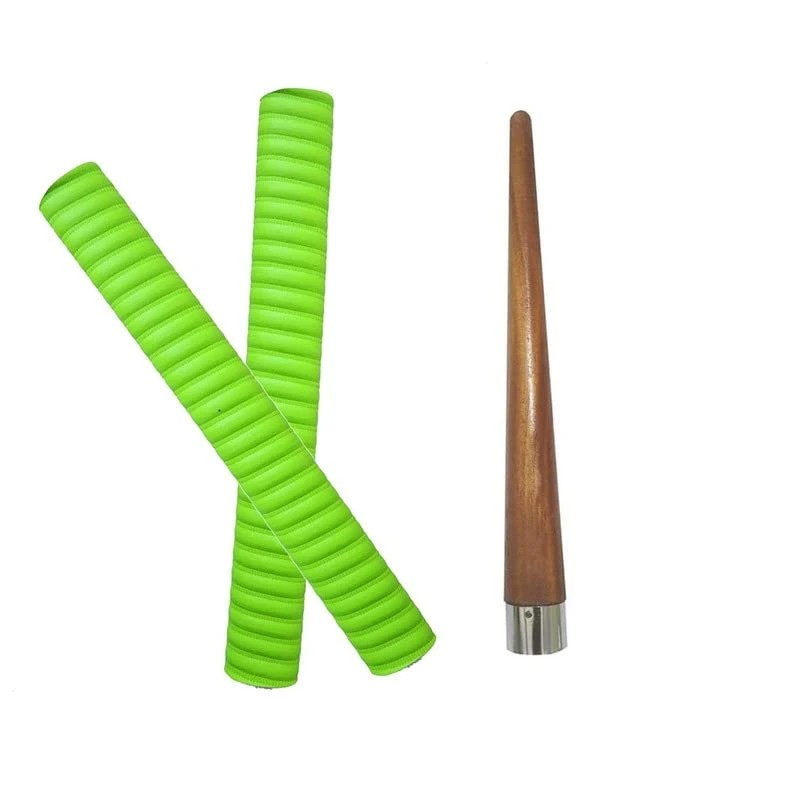 Bat Grip Ergonomic Soft Rubber Grip for Better Cricket Swing | Durable, Bat Grip for All Cricket Players 2 Green Grip and 1 Wooden Cone
