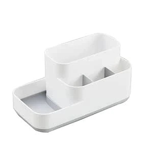 Plastic Multipurpose Storage Holder Stand for Bathroom Toothbrush Tongue Cleaner Soap Comb Razor Shaving Kit and Toiletries Cosmetics Organizer