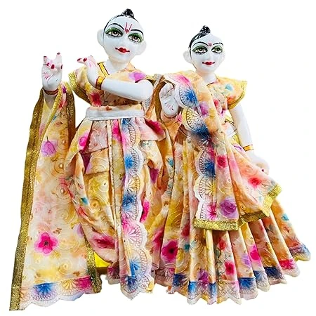 Beautiful Radha Krishna Washable Dress// Yellow Cotton Embroidery Fabric //Best for Summers (5 NO / 8 INCH Idol) 1 Pair