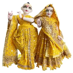 Beautiful Radha Krishna Washable Dress//Yellow Color Georgette Fabric Guaranteed (4NO/7INCH Idol) 1 Pair