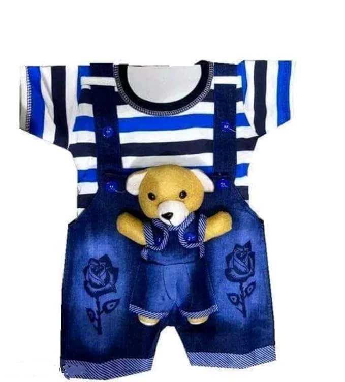 BETRAX Baby Striped T-Shirt with Dungaree Denim Clothes for New Born Baby Blue (Pack of 1)