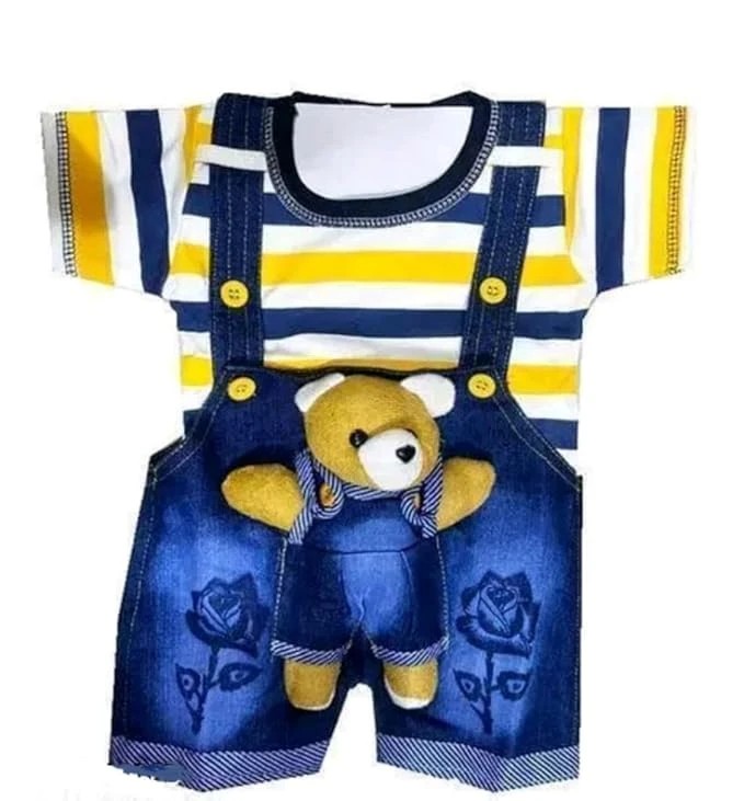 BETRAX Baby Striped T-Shirt with Dungaree Denim Clothes for New Born Baby Yellow (Pack of 1)