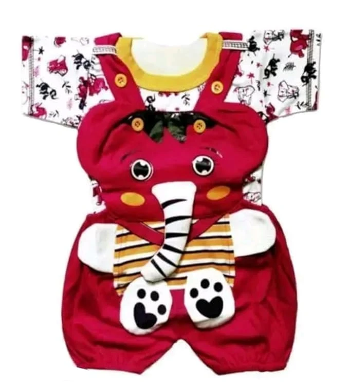 BETRAX Unisex Baby Boy's & Baby Girl's Clothes for New Born Baby T-Shirt with Cotton dungree Set Color Maroon (Pack of 1)
