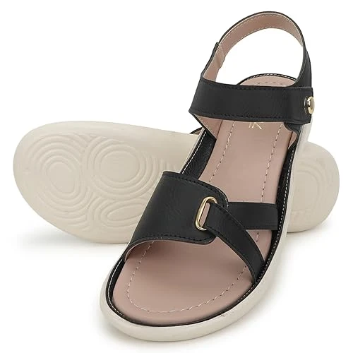 Women Stylish black Flat Sandals are a perfect combination of comfort and elegance. These sandals are versatile enough to pair with both casual and semi-formal outfits, making them a go-to choice for everyday wear.