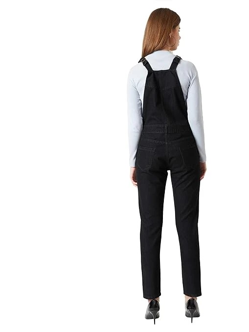 Women's Regular Fit Mid Rise Regular Length Denim Dungaree Size X-Large Color Velvet Black