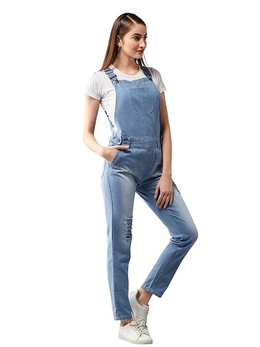 Blue Denim Pinafore Dungaree Dress for Women, Stylish Cotton midi Skirt for Office, Travel, and Casual Occasions, Available in Plus Size