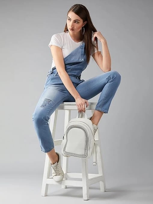 Blue Denim Pinafore Dungaree Dress for Women, Stylish Cotton midi Skirt for Office, Travel, and Casual Occasions, Available in Plus Size Size Medium