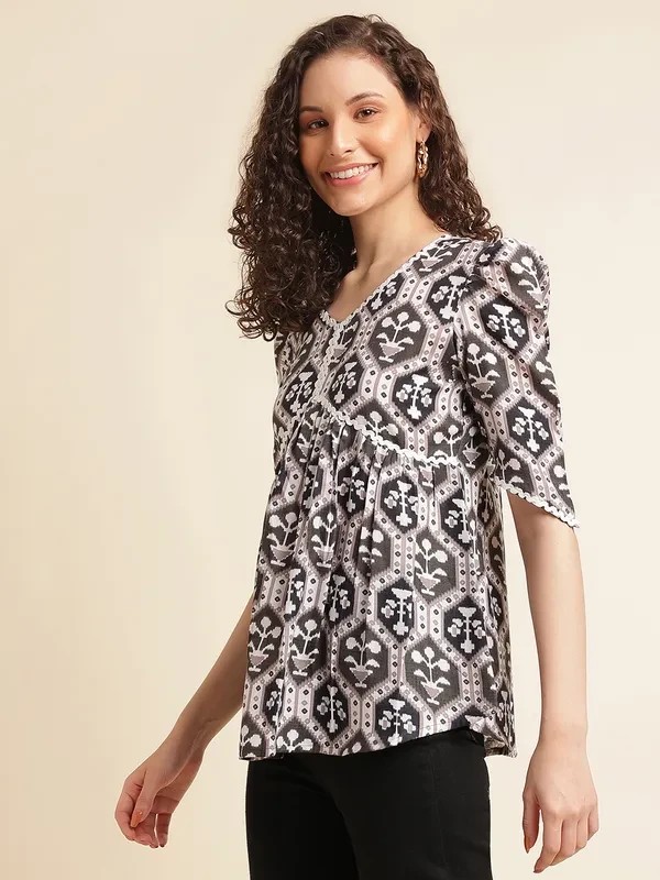 Multicolor Rayon Slub Casual Printed Top For Women