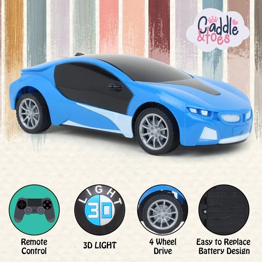 Car Remote Control 3D with LED Lights, Chargeable (Blue)