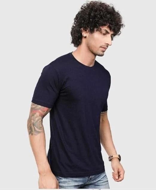 Classic Cotton T-Shirt, Olive Green, Short Sleeve, Crew Neck, Casual Wear (in, Alpha, L, Navy)