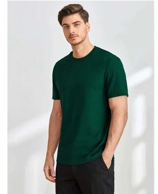 Classic Cotton T-Shirt, Short Sleeve, Crew Neck, Casual Wear (in, Alpha, Small, Bottle Green)