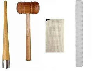 Combo of Cricket Knocking Wood Mallet Hammer +Bat Preparation Tape + Bat Grip Cone + 1 Bat Grip (Tool & Accessories Pack of 4)