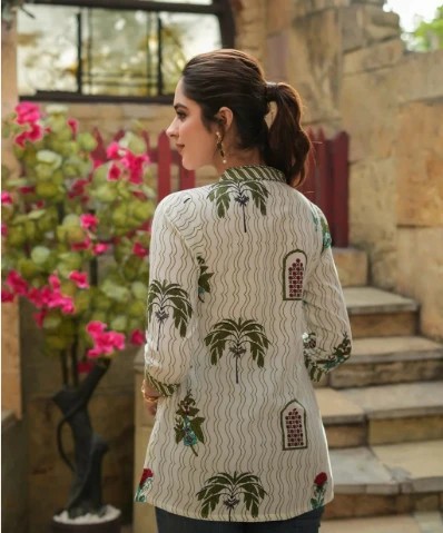Cream Rayon Slub Elegant Formal Top For Women