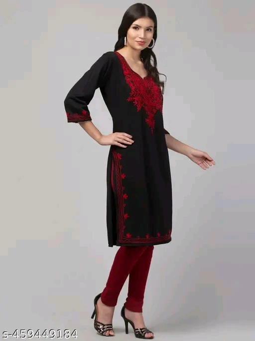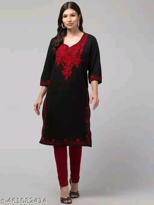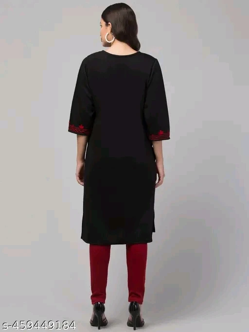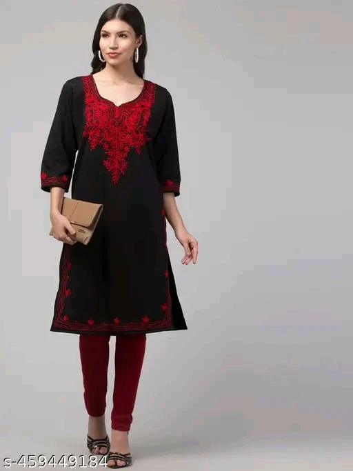 Command attention with the Crimson Noir Kurti Set, a bold expression of heritage and sophistication. This black straight-cut kurti is adorned with intricate red embroidery that frames the neckline, sleeve cuffs, and hemline—creating a dramatic contrast that exudes festive charm. Paired with vibrant red leggings and black open-toe heels, the ensemble is completed with a beige clutch and long earrings for a polished, semi-formal look. Ideal for cultural celebrations, evening gatherings, or stylish daywear, this outfit blends timeless tradition with modern elegance.
