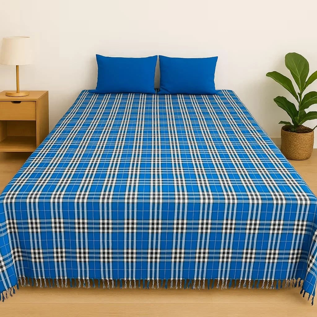 Dhaga Vishwas Ka 100% Cotton Bedsheet for Summer | Handloom Cotton Bedsheets for Double Bed | All Season Comfort Color Blue Pack of 2