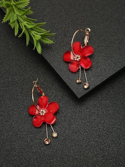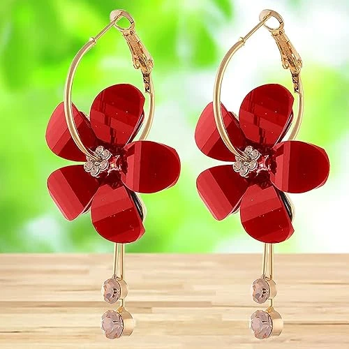 Earrings for Women Floral Shaped Crystal Multicolor Long Chain Dangler Earrings for Women and Girls