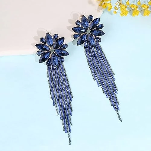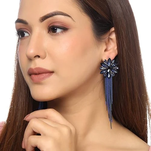 Earrings for Women Floral Shaped Crystal Multicolor Long Chain Dangler Earrings for Women and Girls