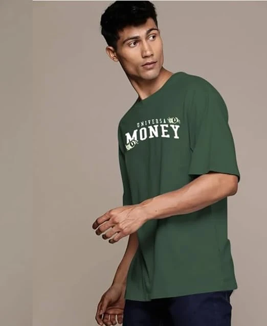 Earthwave Graphic Print Oversized Cotton T-Shirt, Half Sleeve, Round Neck, Casual Streetwear (in, Alpha, Medium, Olive Green)