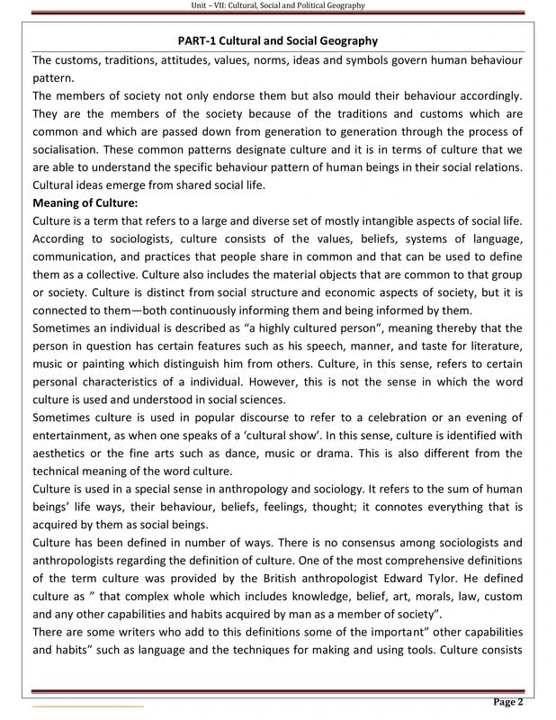 Eduiq Geography Notes Unit VII Cultural Social and Political Geography And Unit VIII Geographical Thought Plus MCQs For UGC NET Entrance