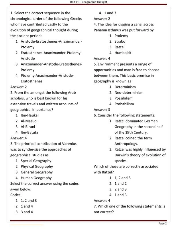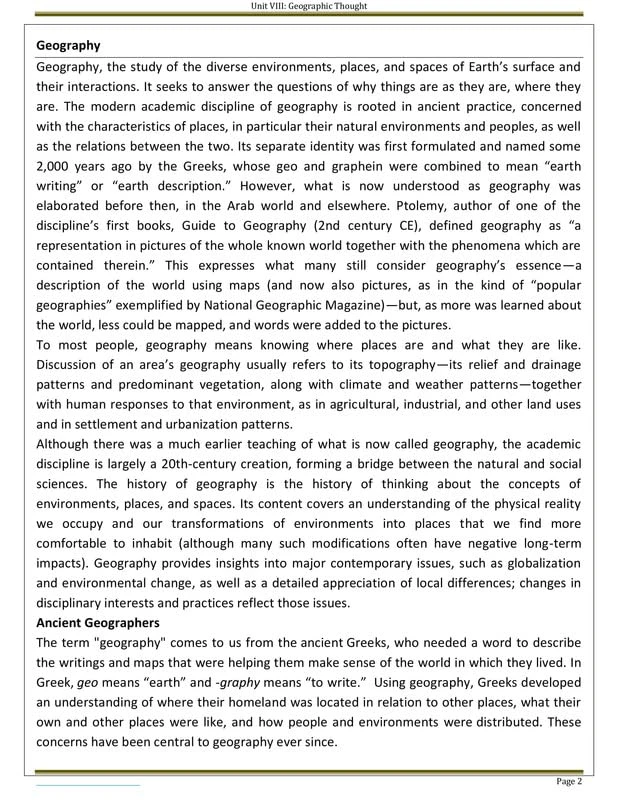 • Unit VIII: Geographical Thought