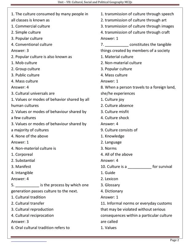 • Unit VII: Cultural, Social, and Political Geography