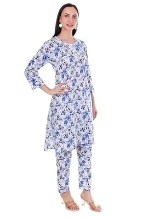 The classic design showcases a beautiful blend of traditional aesthetics and contemporary style, making it perfect for casual outings and daily wear. The 3/4 sleeve length offers comfortable mobility while maintaining a graceful appearance. Crafted from quality cotton fabric, this kurta ensures comfort throughout the day. The straight cut silhouette flatters various body types, while the striped pattern in refreshing blue and white adds a modern touch to the traditional design.