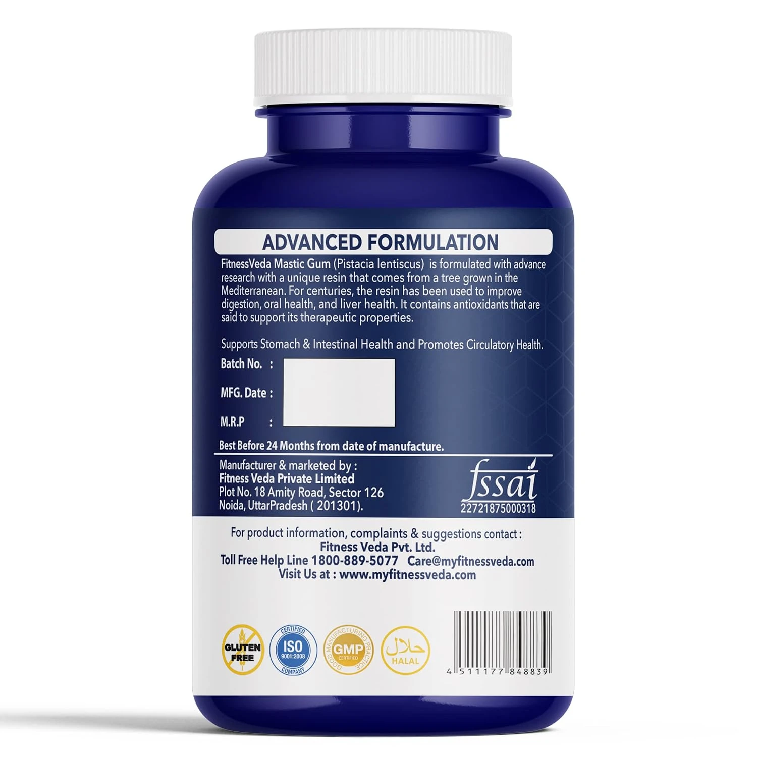 • ♦FitnessVeda Mastic Gum (Pistacia lentiscus) is formulated with advanced research with a unique resin that comes from a tree grown in the Mediterranean. For centuries, the resin has been used to improve digestion, oral health, and liver health. It contains antioxidants that are said to support its therapeutic properties.