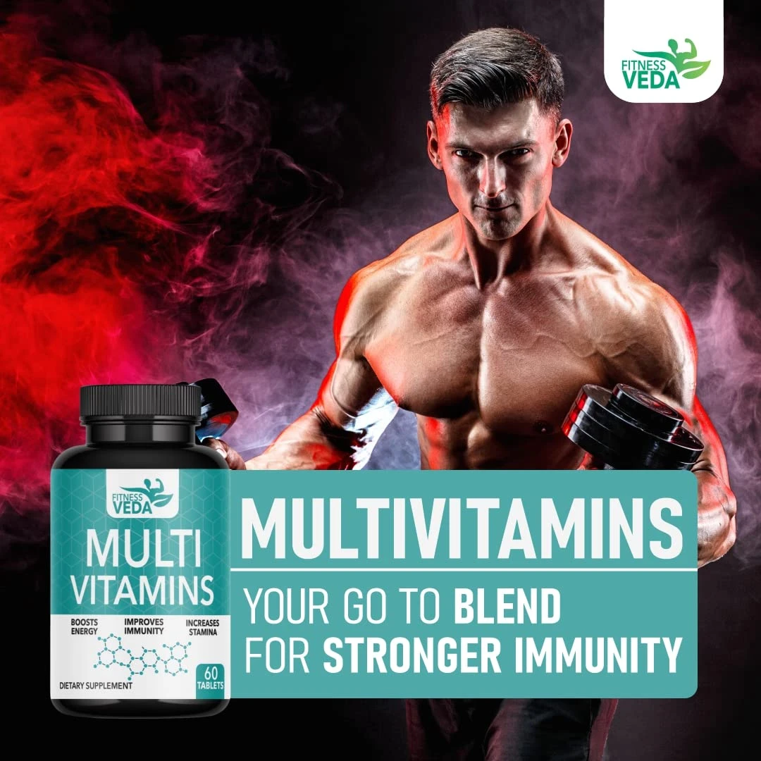 FITNESS VEDA Multivitamin Tablet For Men Women, With Vitamin C, Zinc, Vitamin D3, Ginseng Extract | 60 Tablets
