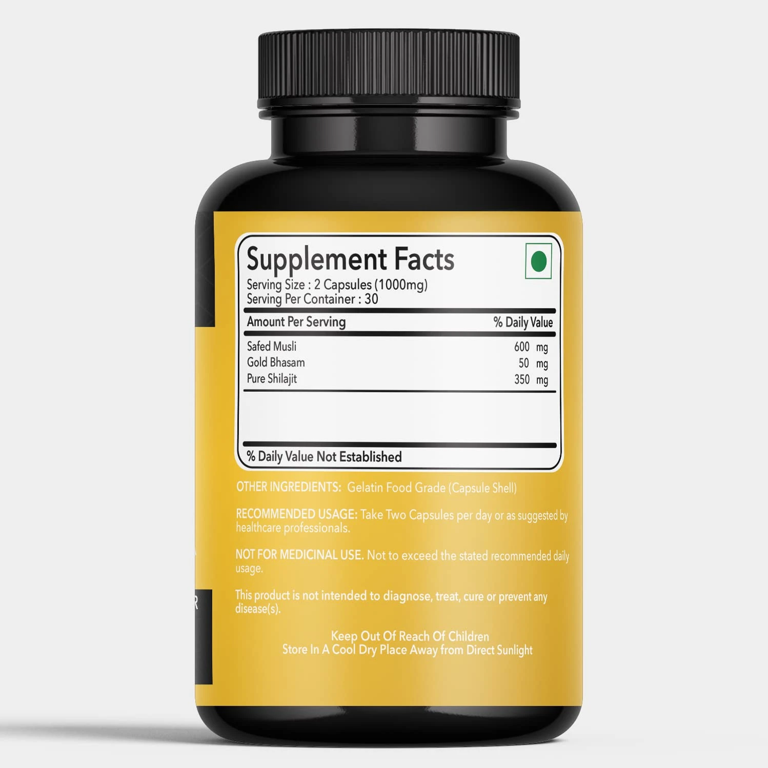 • Contains a traditional blend of Safed Musli, , Shilajit, and Gold bhasma