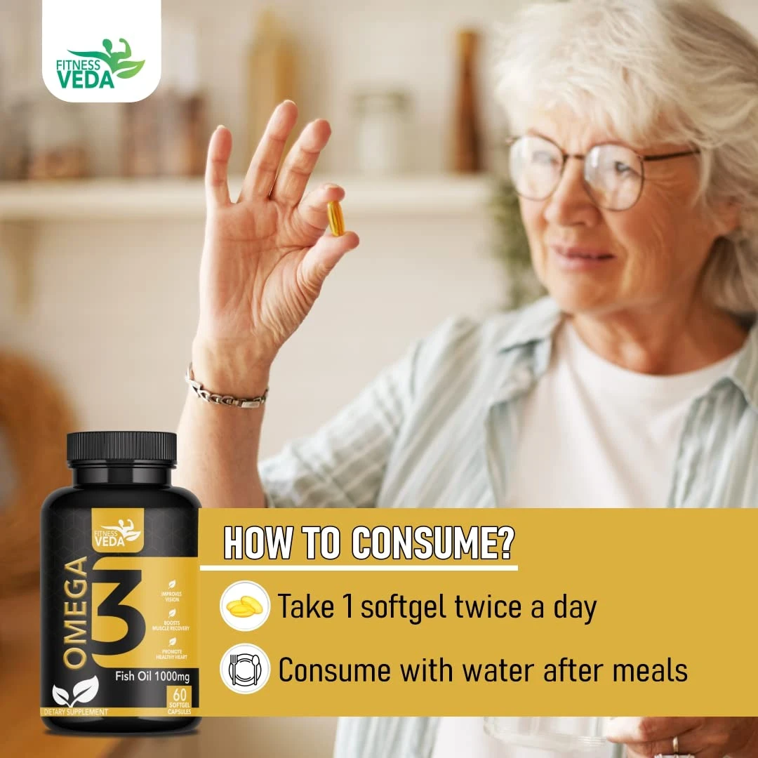 FITNESS VEDA Omega 3 Fish Oil 1000mg, Omega3 Fatty Acid Capsules 60 Softgels