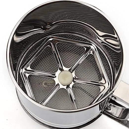 Flour Sifter/Atta chhani Hand Press Design Stainless Steel Flour Sifter Corrosion Resistant Large Capacity Flour Sieve Cup for Sugar Flour (1)