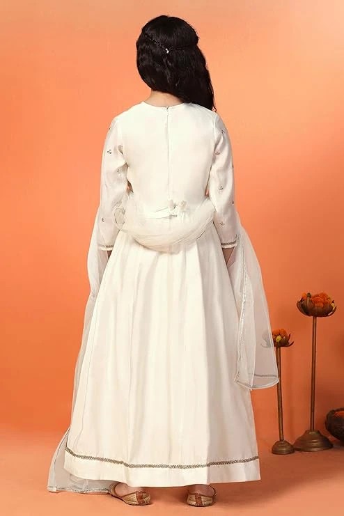Girl's Embroidered Maxi Dress with Dupatta Ethnic Dress for Girls | Maxi Length Dress with Dupatta | Embroidered Dress | Long Dresses Size: 11-12 Year Color White
