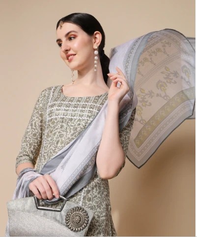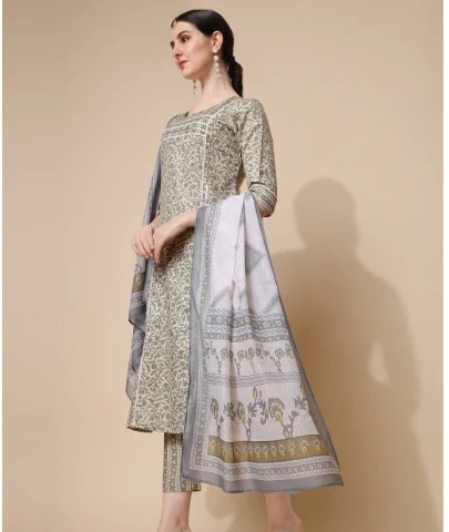 Green Cotton Blend Kurta Set For Women