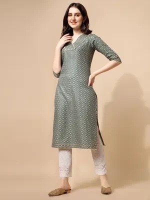 Grey Cotton Blend Kurti for Women