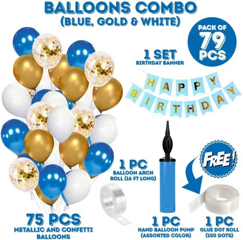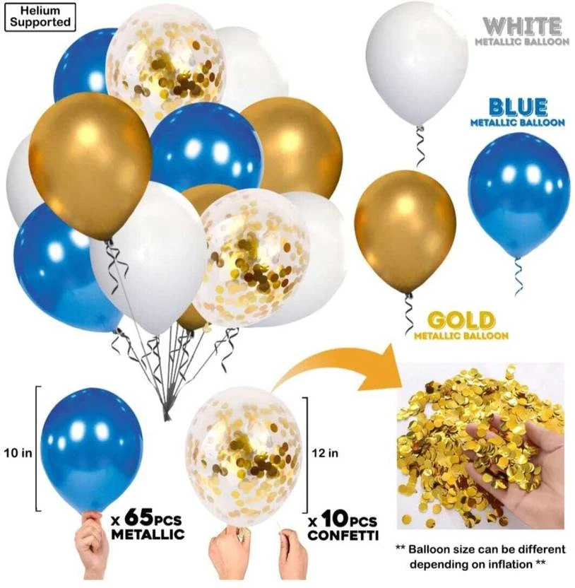 Kapoor stores 79pcs Blue White and Gold Mettalic Balloon (Set of 79)