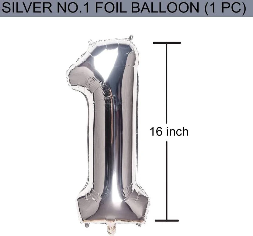 Kapoor stores Solid 1 Number Foil Balloon - 16 Inch_BL247 Letter Balloon (Silver, Pack of 1)