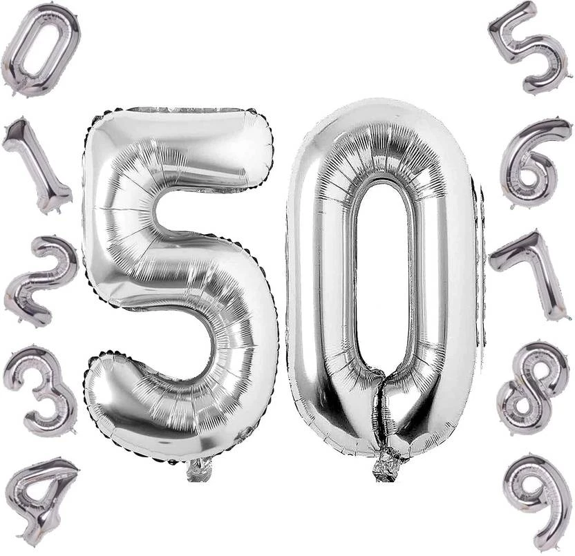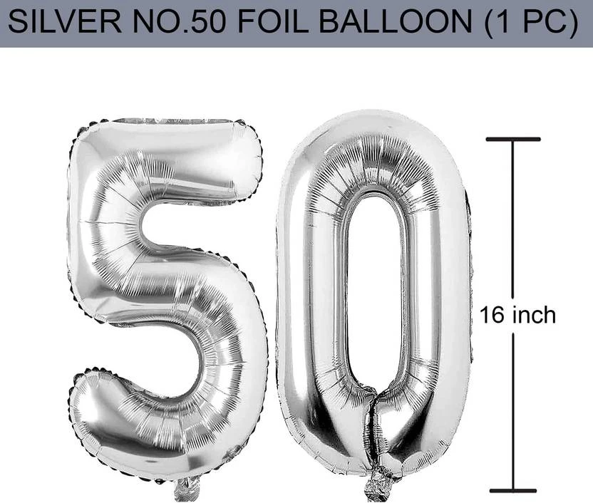 Kapoor stores Solid 50 Number Foil Balloon - 16 Inch Balloon (Silver, Pack of 2)