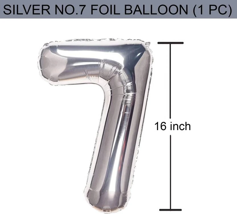 Solid Seven Number '7' Foil Balloon  (Silver, Pack of 1)