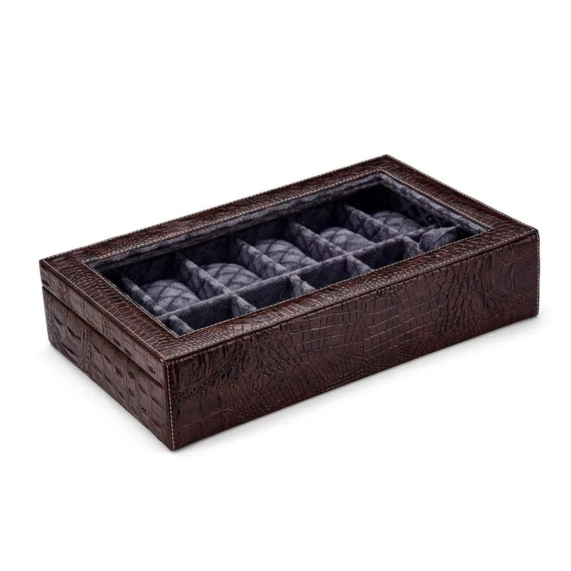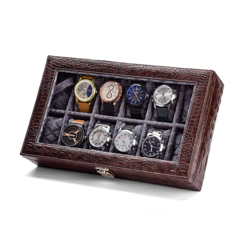 LAAM ALIF 12-Slot Watch Box Organizer for Men & Women Gift Box – Durable Leatherette with Soft Pillows (Brown Grey)