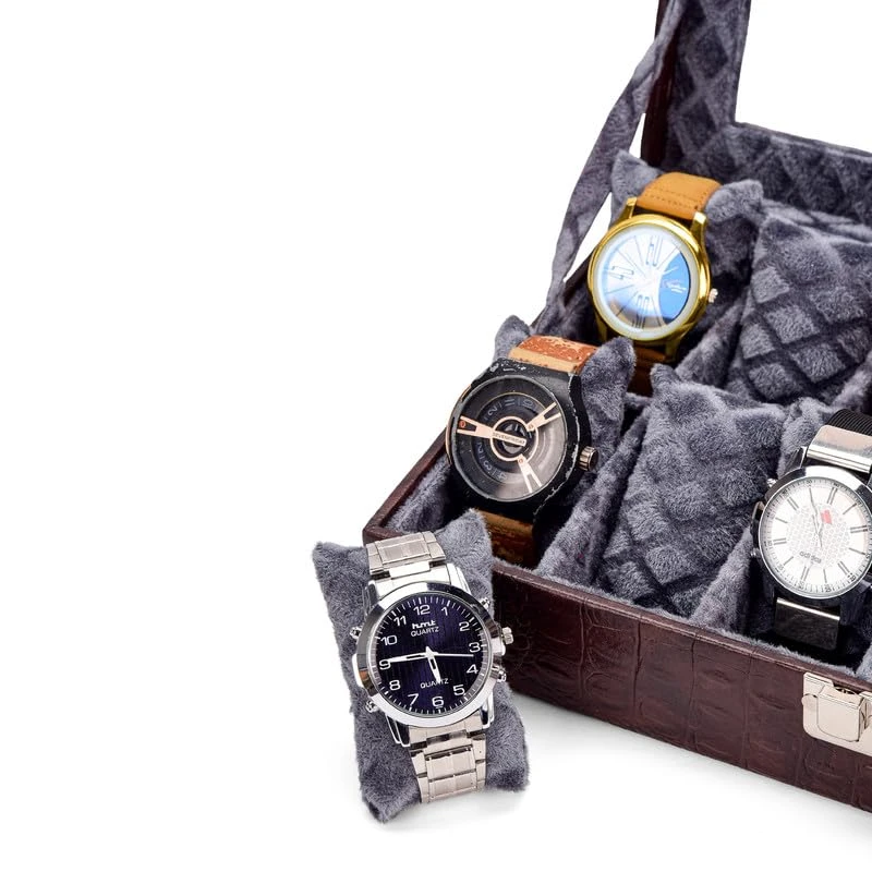 4 Slots Brown Unisex Watch Box Organiser Watch Box (Brown::Maroon, Holds 4 Watches)