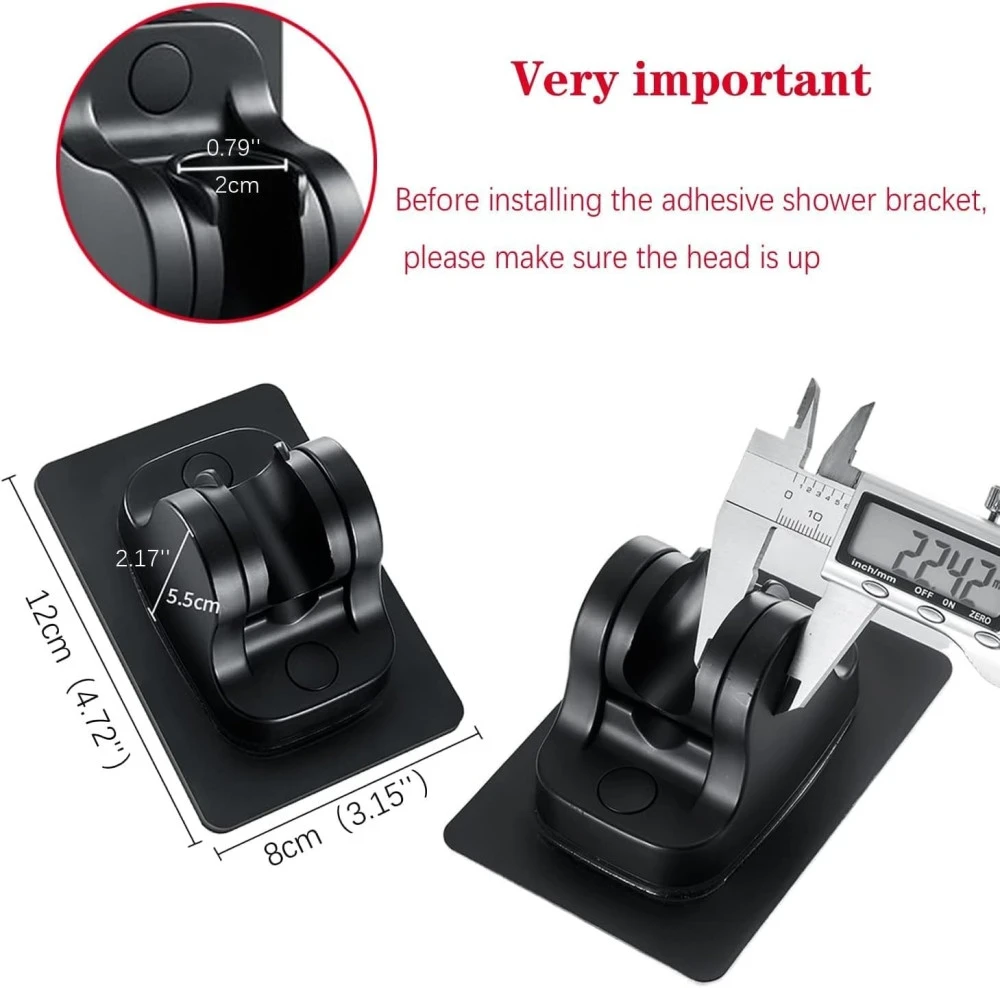 SELF-ADHESIVE STRIP-No drill holes needed, no damage to your wall. Quick and easy mounting. Strong adhesiveness and waterproof, strong and sturdy. Remove easily and no trace left behind. ADJUSTABLE DESIGN-This shower head holder can adjust the angle and fits different style handheld shower heads. Better bathing experience APPLICATION-Use premium adhesive works on a variety of surfaces. Besides flat, smooth surface such as metal, ceramic tile, glass, wall, minor, wood, etc. CONVENIENT AND PRACTICAL-And This shower hose holder can be placed at any strategic location and altitude. Convenient for the kids, old people when taking his shower. BRAND ADVANTAGE-NearMoon has been committed to developing bathroom products for many years. Now is completed with extensive product lines?Better quality products, More favorable prices.