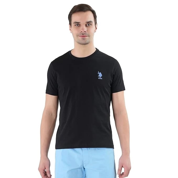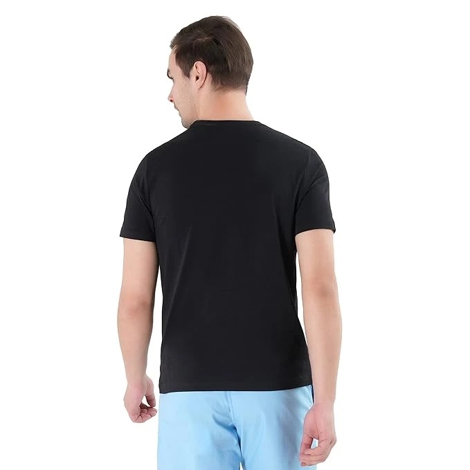 Men's Cotton Regular Fit Solid T-Shirt Crew Neck, Short Sleeves Color Black Size Medium