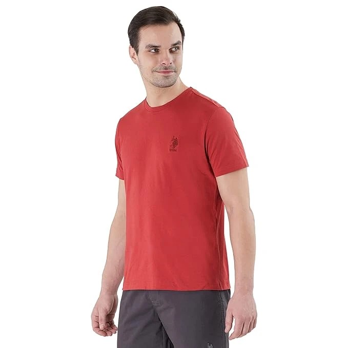 Men's Cotton Regular Fit Solid T-Shirt Crew Neck, Short Sleeves Color Red Size Medium