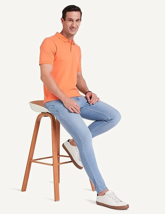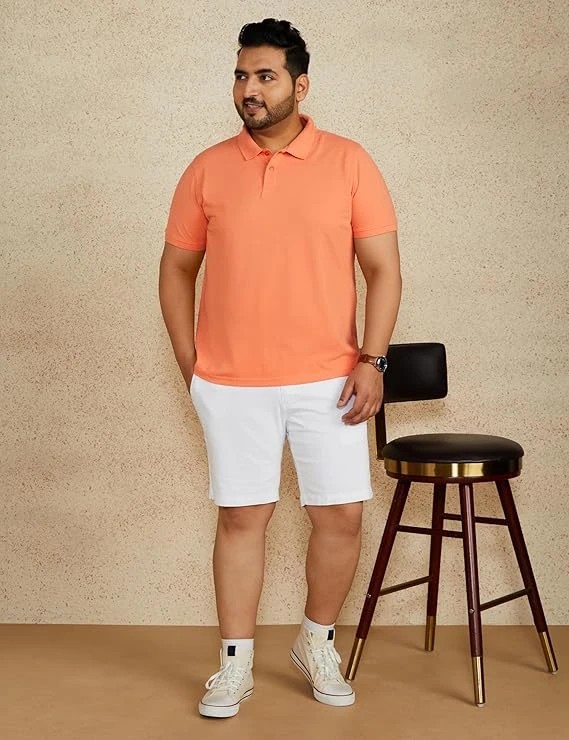 Men's Cotton Rich Solid Polo Tshirt | Collar Tshirts | Half Sleeves | Plain-Regular Fit Size Large Color Orange