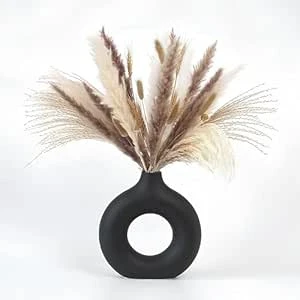 Metro Kreations Ceramic Donut Vase | Minimalist Flower Vase for Pampas Grass & Table Showpiece | Ideal for Living Room, Home, Shelf & Office Decor (Black & White, 6 & 8 inch)