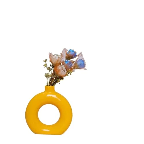 Ceramic Donuts Shape Vase only- Unique Decorative Circular Vase for Home, Office, or Gifts | Handcrafted Porcelain Vase in Elegant Design - Approx 6 to 8 Inches- as per selected color and quantity. Made in India by traditional artisans. Material - Ceramic/Porcelain.